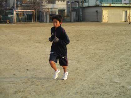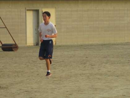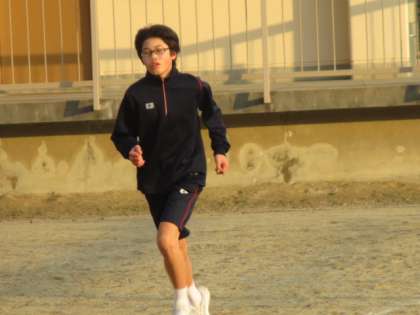 陸上競技部長距離走のメンバーが冷たい朝、懸命に走っています。私が励まされます。