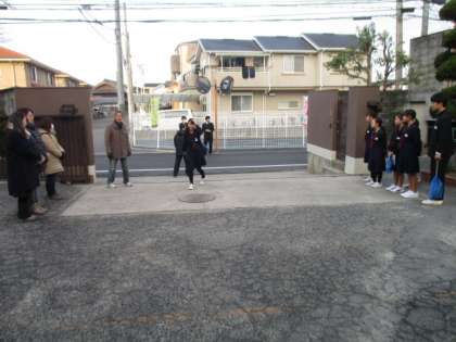 火曜日は生徒会が校門に立つ日です。そして保護者、地域の方も来ていただいています。