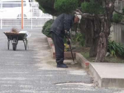 朝、7時半まえから学校整備員さんが掃除をしていただいています。