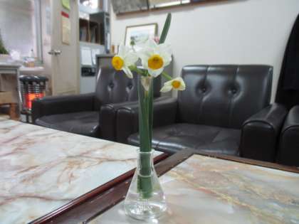 校務員さんが校内に咲いている「すいせん」を校長室においてくれました。冬の花の中で好きな花のひとつです。