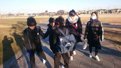 今朝は冷たく寒い朝ですが、仲間を待って一緒に登校する姿を見ると心があたたまります。