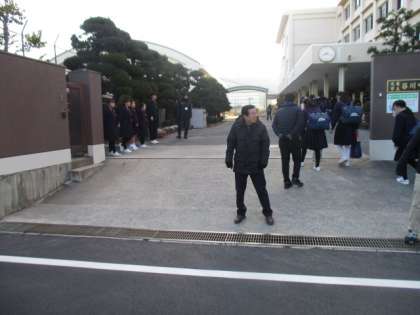 地域の方々に迎えられる谷川中学校生徒は幸せです。生徒会も寒い中、校門に立ちありがとう。