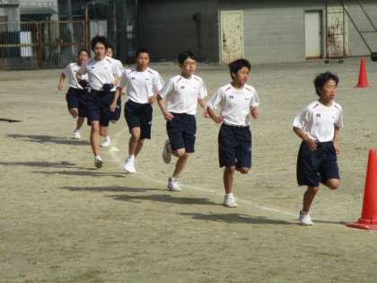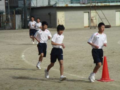 2年1,2組の男子持久走です。2年西村先生も力走です。