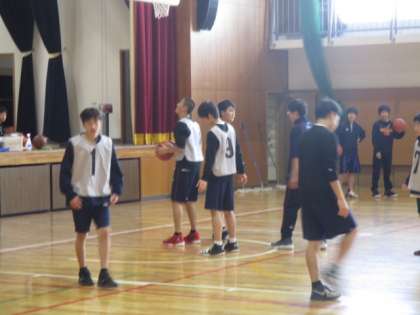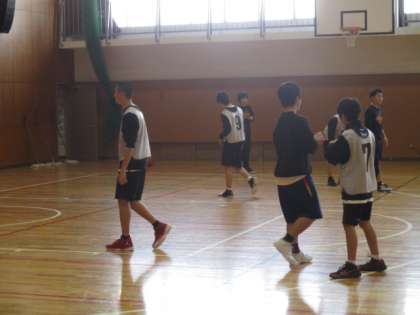 午後から2年男子バスケットボール部が体育館で練習をして、1年生は他の学校へ行っています。
