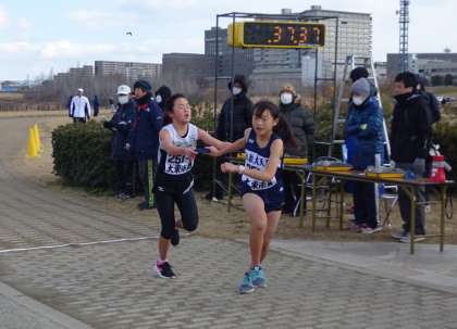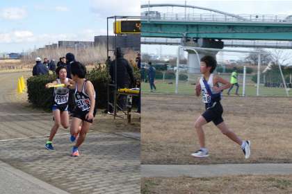 低い気温と河川敷特有の強風にも負けず、寒空の下、選手たちはタスキを次の選手へとつないでいきました。