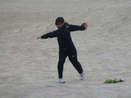 朝練で投てき種目1人だけの練習です。黙々と打ち込む姿勢に私が襟を正さなければと
