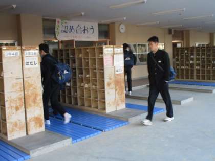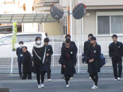 朝の登校時の様子です。生徒会も寒い中、仲間を迎入れています。