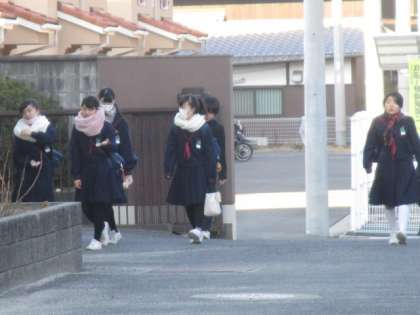 冷たい朝ですが、生徒は時間を守り登校してきます。