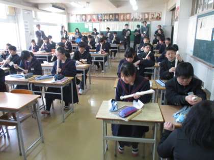 深野中学校数名の先生と本校の先生が交流研修を行っています。本校の指導教諭、河合先生の授業(1年4組)を見学しながらの研修です。今回の研修には大東市教育委員会の指導主事の方も2名参観されています。