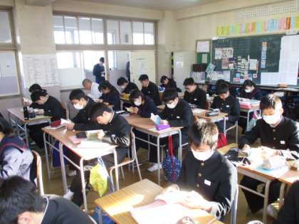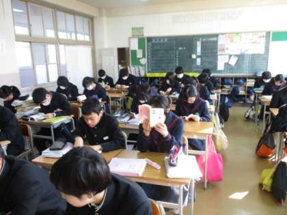 3年1,2組の朝読風景です。