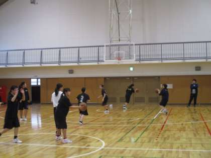13時から体育館で女子バスケットボール部が練習をスタートしました。