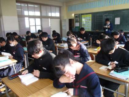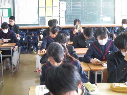 当たり前の光景に思われますが、窓をしっかり開けて読書に取り組む谷中生です。