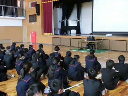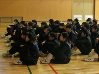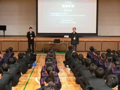 2年生たちは、私立公立高校受験のことなど、柗本先生の丁寧でわかりやすい説明を真剣に聴いていました。