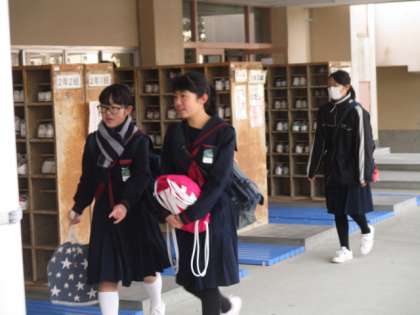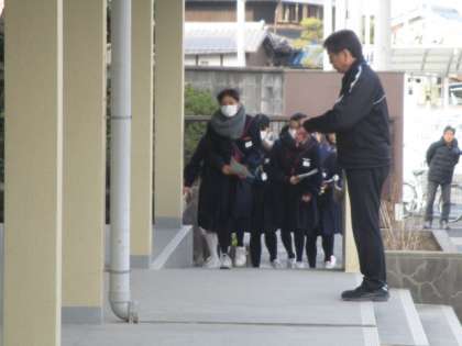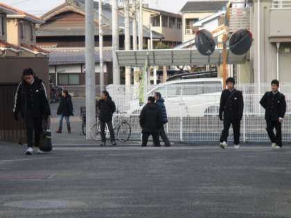 朝の登校の様子です。8時30分が近づくと地域の方も「急ぎなさい〜」と声をかけて