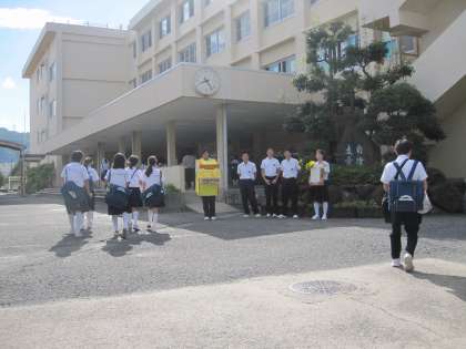 今日も地域の野村さん、中川さん、そして自治会長さんもあいさつ運動に参加してくださっています。ありがとうございます。