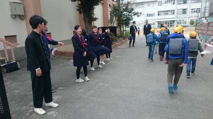 生徒会役員が朝、校区の住道北小学校にあいさつ運動に行きました。