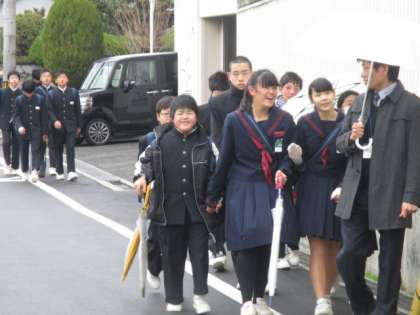 今日は高校2年生にあたる卒業生が「あいさつ運動」に参加してくれました。これにはびっくりしました。生徒会役員、地域の方が本当にありがとうございます。卒業生の気持ちがとても嬉しいです。
