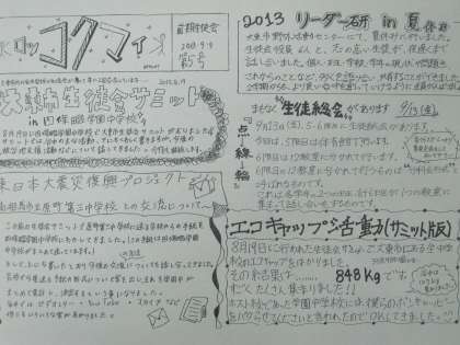 大東市生徒会サミット、東日本大震災復興プロジェクト、リーダー研、生徒会総会についてなど、盛りだくさんの内容です。