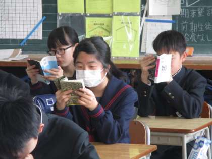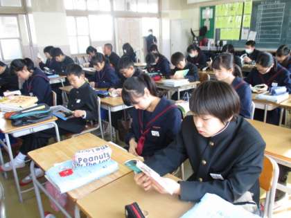 窓を満開にして、1年1,2組の朝読です。