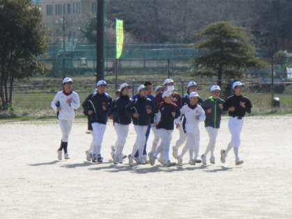 四条・谷川中学校合同野球チームが9:00から練習スタートです。