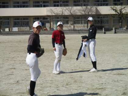 卒業生が練習に来てくれました。後輩もハッスルしています。