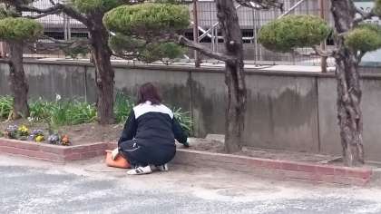 小学校卒業式から学校に戻ってくると、校務員さんが草抜きを丁寧にされていました。