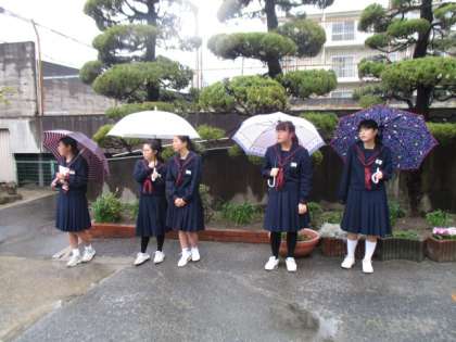 今日も朝から雨です。今日は10時から公立高校一般選抜入試発表があります。生徒会も今年度最後の校門での挨拶です。火曜日、金曜日に校門に立ってくれてありがとう。