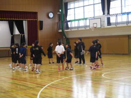 体育館に行ったら9時から女バスがアップをしていました。