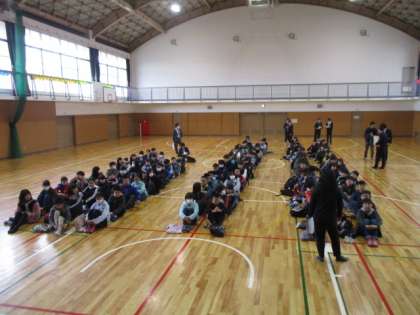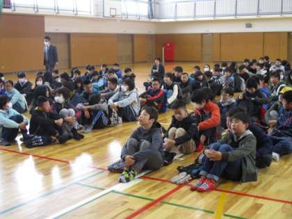 3月19日に小学校を卒業した児童が登校してきました。午前中、国語、算数の入学前テストを受けます。体育館に行ったら多少緊張気味の児童がいました。三箇小学校、深野小学校、住道北小学校から谷川中学校に入学です。