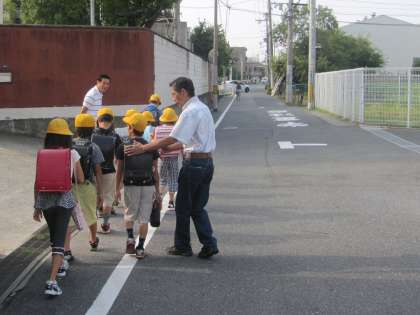 また、通勤・通学途中の地域の方、高校生にもあいさつをされたり、登校する小学生には「気をつけて」と温かい声かけをしておられます。