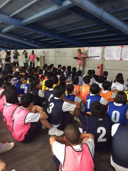 説明を集中して聴いています。