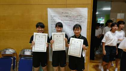 2・3年生が団体戦と個人戦に参加しました。結果は個人戦の二部(2年生以下の部)でダブルス、シングルス共に三位の結果でした。