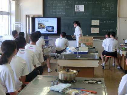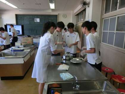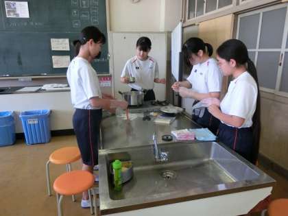 食物栄養学の講座では、災害時などフライパンがない中で限られた道具で調理することを学びました。