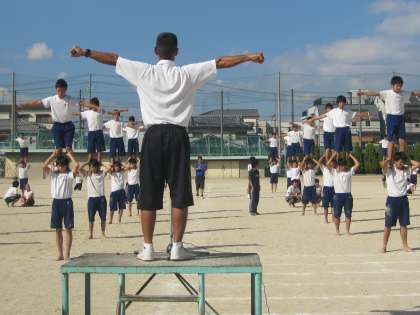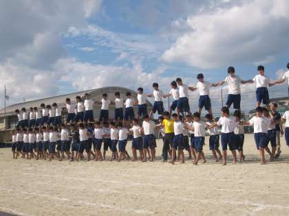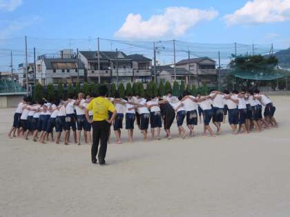 昨日の予行後、3年生男子が組体の練習を行いました。