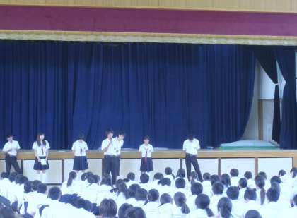 学級委員会から1学期のまとめや2学期の目標などが発表されたり、先生方からは夏休みの過ごし方について注意や励ましがありました。