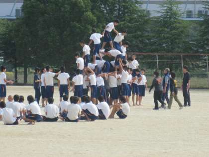 写真は男子組体の練習、拍手を贈る女子の様子です。