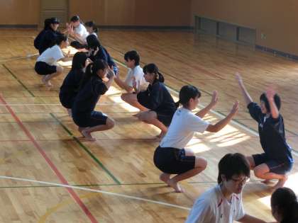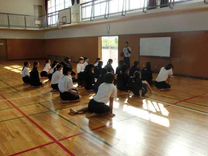 蹲踞(そんきょ)は剣道の基本姿勢の一つですが、その体勢で「押し相撲」をしていました。