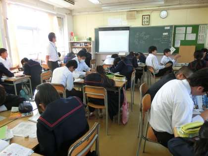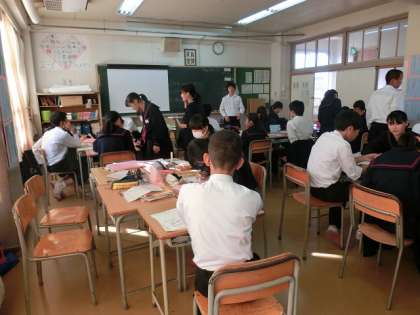 2−3理科の授業と2−1英語の授業は、班を基本活用した学び合いの授業です。