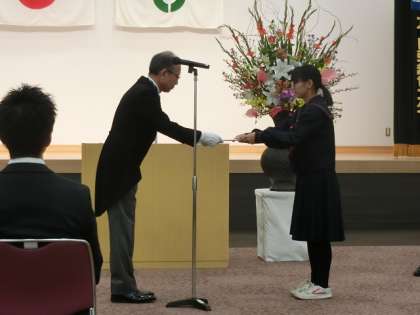 その中の「大東市教育委員会表彰」において、本校2年生の井上さんが『人権作文』の功績を称えられ表彰をうけました。