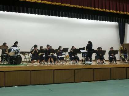 体育館の準備が終了した後、吹奏楽の子どもたちが明日のために練習を開始しました。