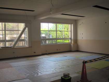9月2日から始まる中学校給食に向けて、配膳室工事が順調に進んでいます。