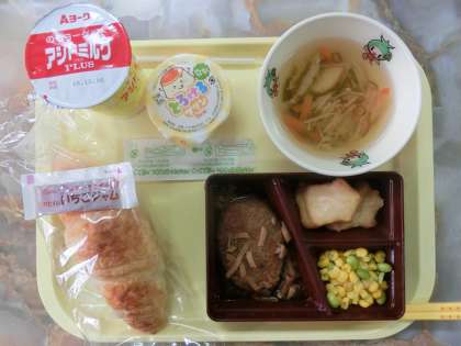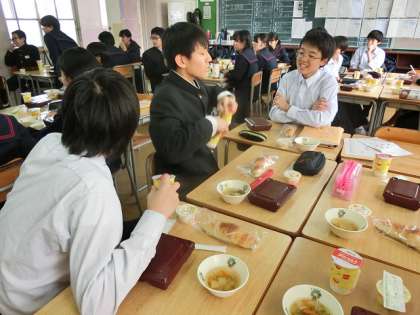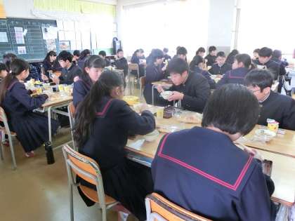 いつもより豪華な給食に、みんな食べるのが待ちきれなくて興奮していました。