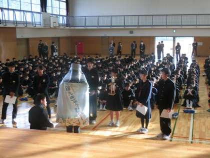 内容は、生徒会から「アイディアボックス設置」や「エコキャップ表彰」などがありました。