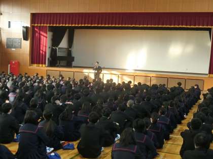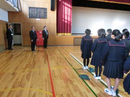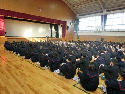 まだ正月疲れが残っている中で、少しばかり眠そうな様子を見せるときもありましたが、校長の話(式辞)や生徒指導の山脇先生の話をしっかり聴いていました。