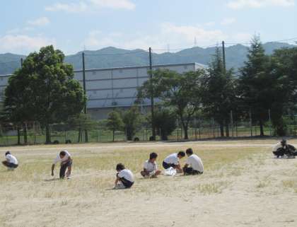 グラウンド草むしり、側溝掃除など一生懸命してくれました。