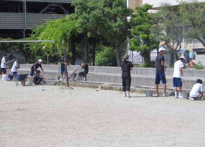 野球部・サッカー部・女子バスケットボール部・陸上部・バドミントン部・体操部、生徒会、有志生徒およそ100名、そして保護者の皆さん、本校教員がいっしょになって校内美化活動に取り組みました。