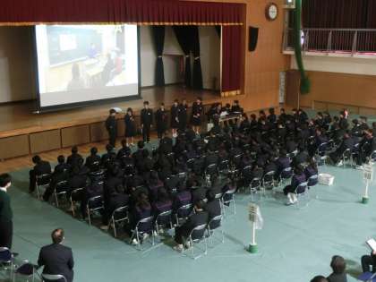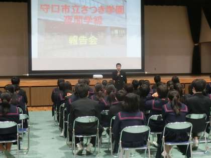 1年生は、人権教育(キャリア教育)の一環で12月7日に拡大班長会議メンバーで守口市立さつき学園夜間学級に訪問しましたが、今日はその報告会を行いました。