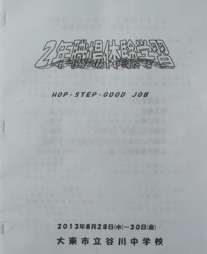 明日22日(木)の2年・学年登校日に「職場体験学習 HOP・STEP・GOOD JOB」冊子が配布されます。