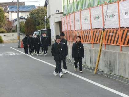 写真は、子どもたちの登校の様子です。