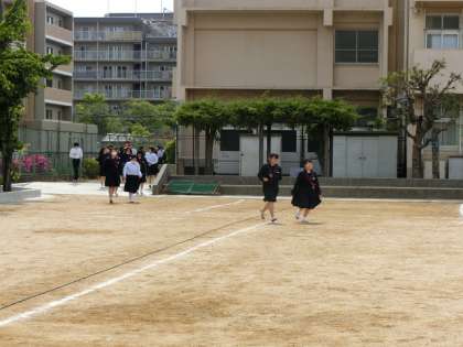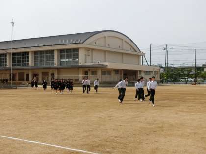 子どもたちは、指示どおり、走ってグラウンドに出てきました。